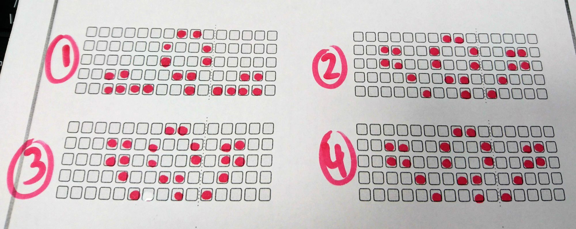 You will find the black blocks in the scroll:bit menu, and the purple image blocks under the advanced part of the menu, in images. Because of the way the micro:bit stores images you'll see the 15x5 block is broken up into a 10x5 and a 5x5. There is a dotted line on the printable grids that shows where the break is.