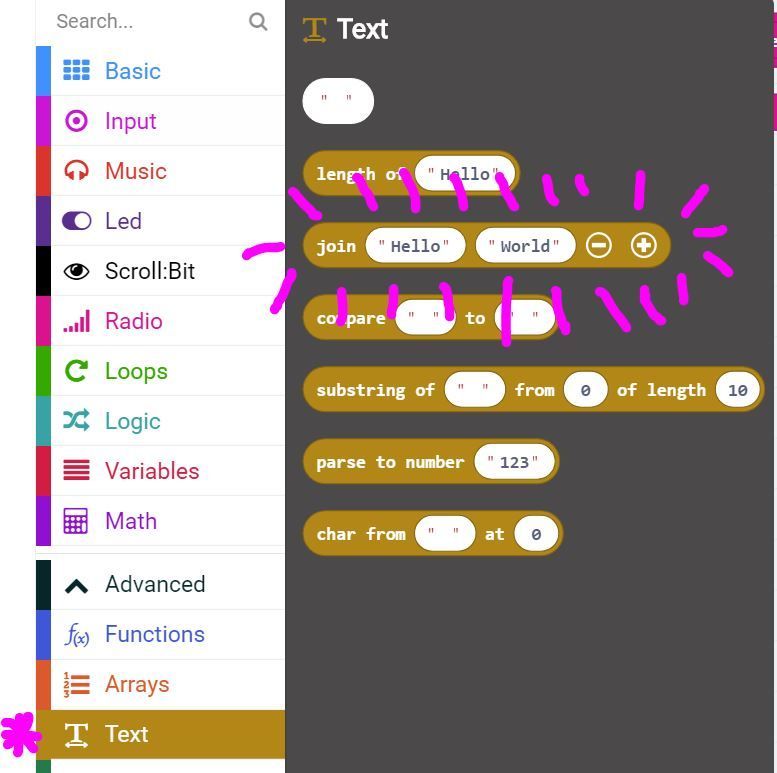 This is where a useful block called "join" comes in. It hides in the advanced menu, under text.