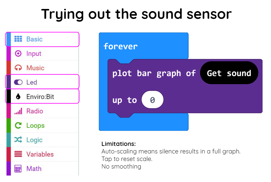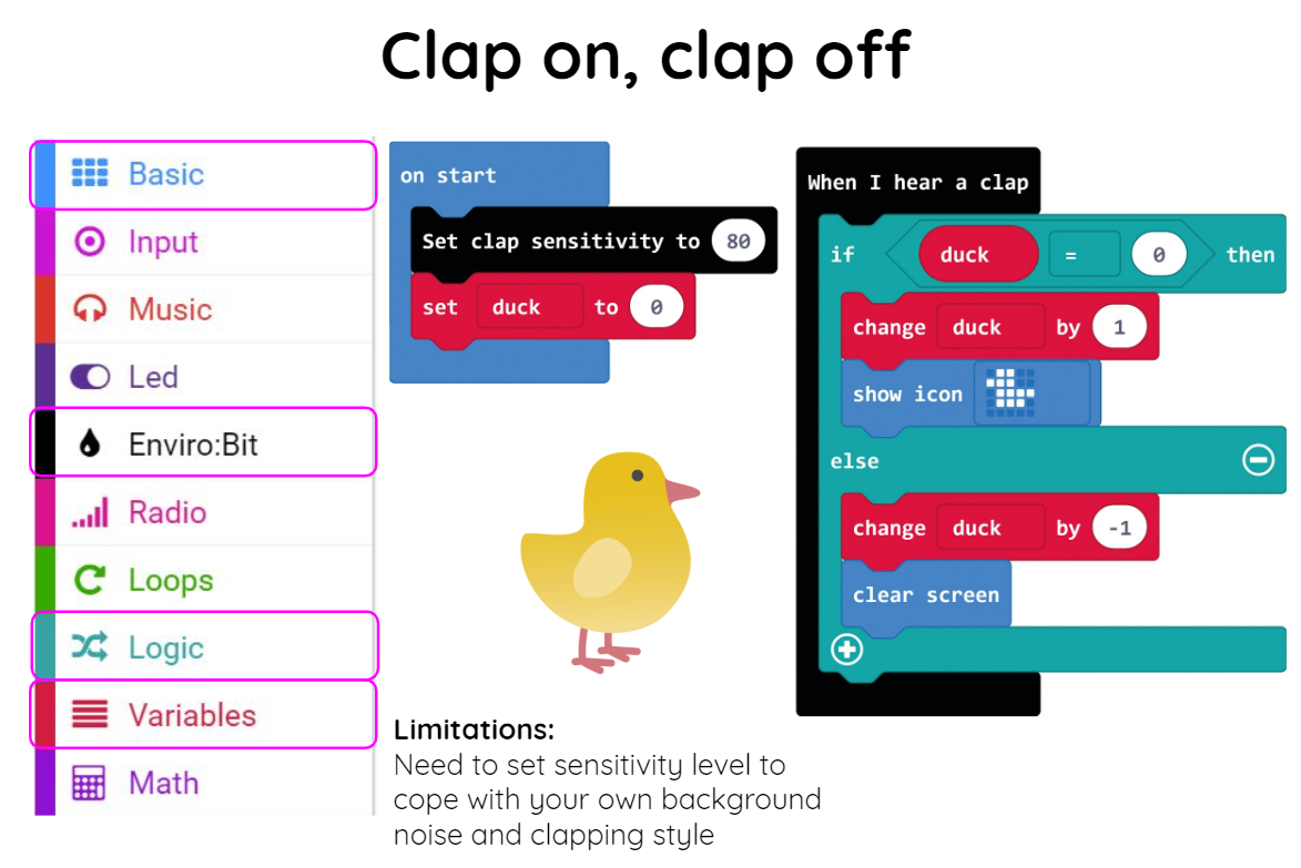 After that, we looked at another application for the MEMS microphone - we've made a coding block that detects a clap, or another sharp sound like a knock on the table.