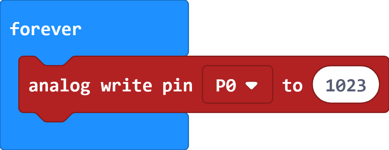 The micro:bit can't vary the voltage on the pin, it can only send 3.3v, or 0v. This means we can send the red part of the LED 3.3v, or 0v - on or off. To mix colours we need to be able to send a little bit of red, some more red, lots of red, etc.