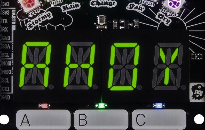 The display on the Rainbow HAT has four blocks, and each block can display a character. If you look closely there are 14 little segments and a decimal point on each block.