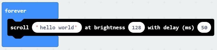 4. Download your code and flash it onto the micro:bit by dragging the saved file onto the micro:bit file system, and watch your message scroll across the screen!