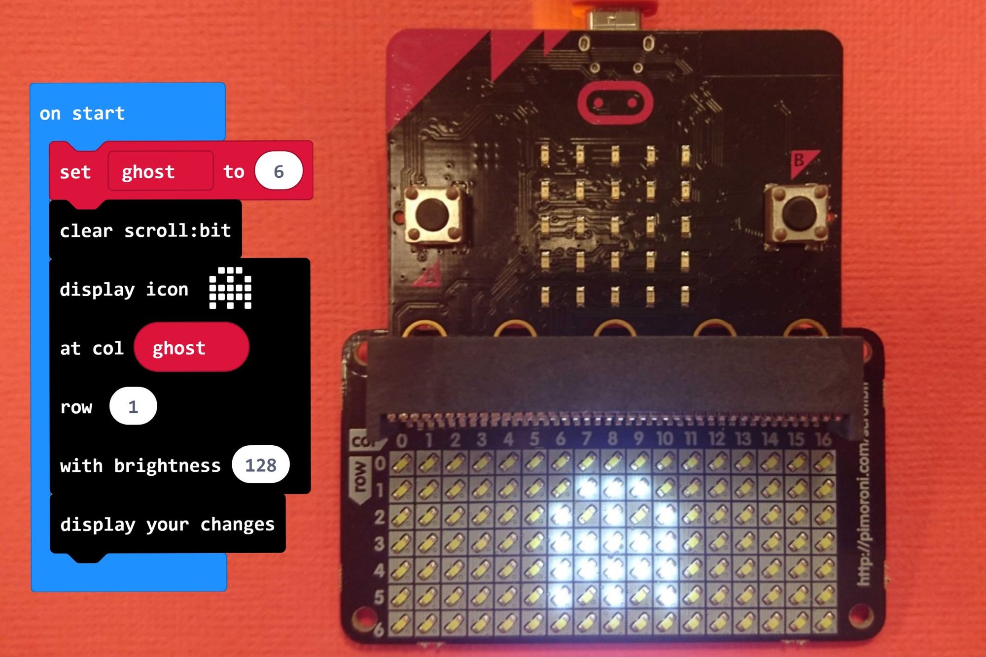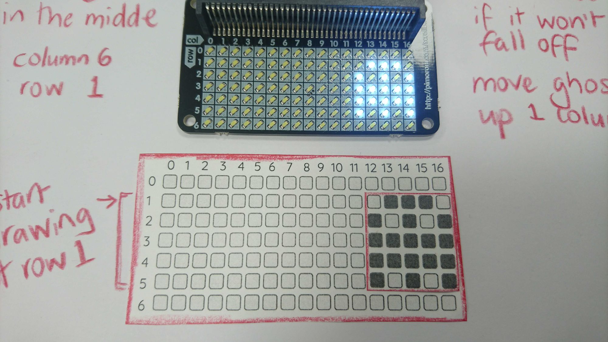When the ghost is on the right edge, the start of the icon (the top left) is in column 12. We now know that we can keep increasing the column number until we get to there, which means we can keep increasing as long as the column number is less than 12.