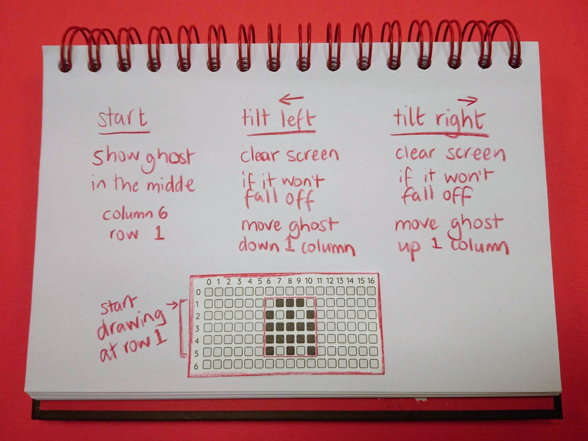 1. Break the code down into steps. What will happen when it starts, what will happen when you tilt left, and what will happen when you tilt right?