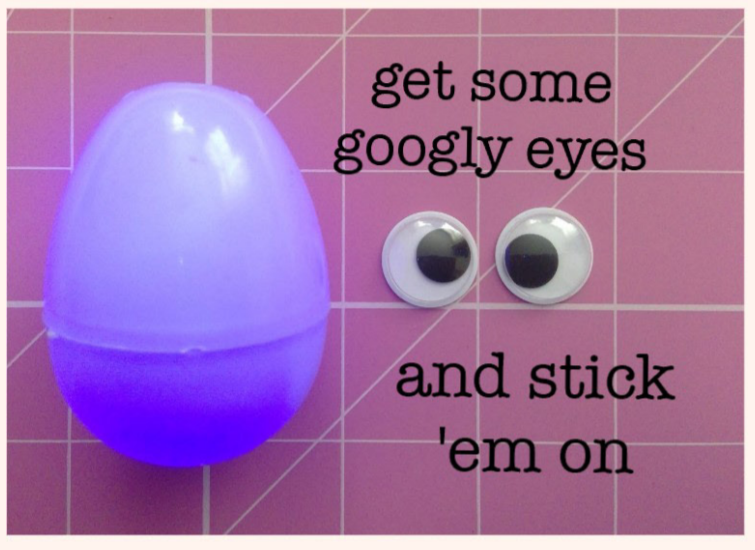Use googly eyes to stick on the side of the egg.