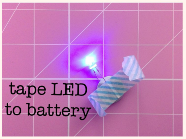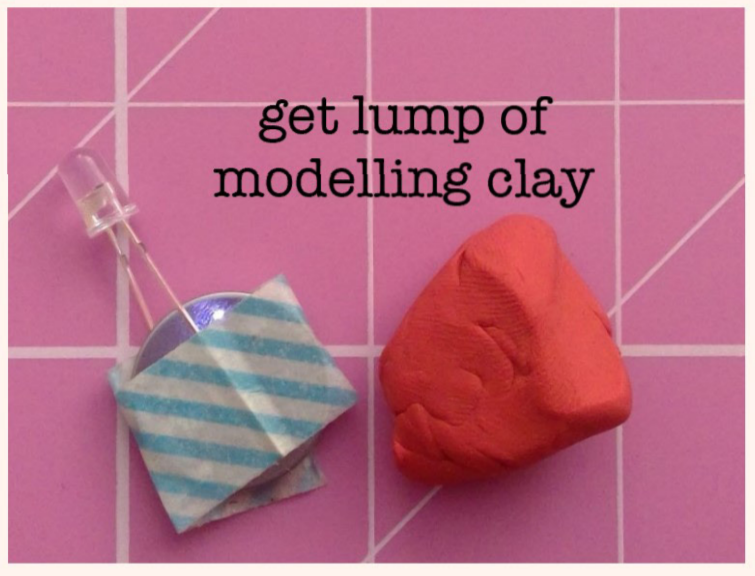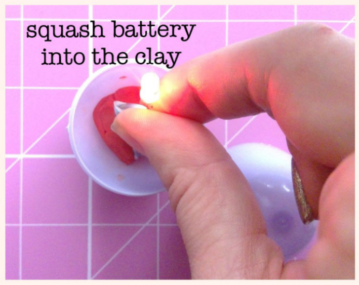 Next, push the battery and LED combo into the clay so that it sticks up.